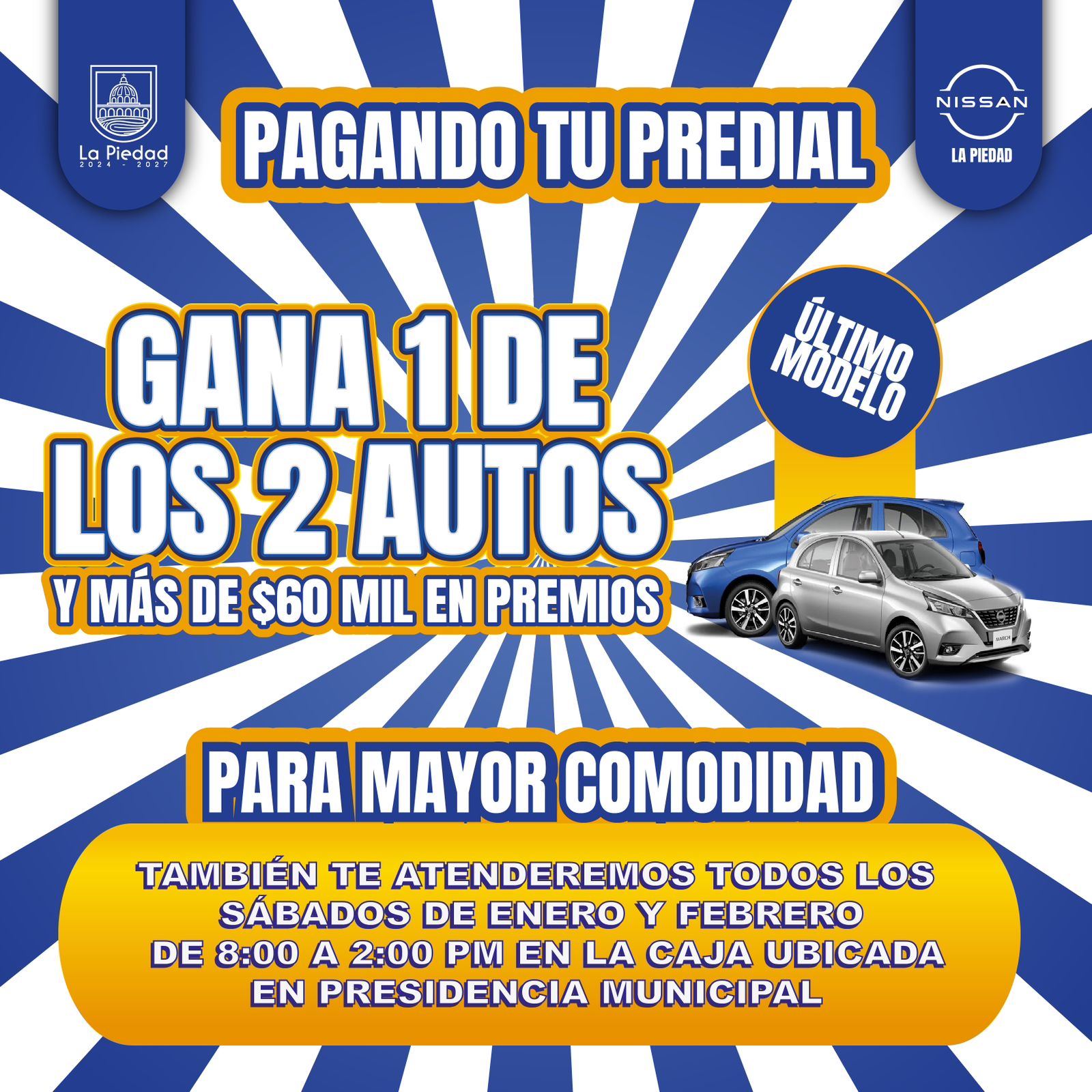 Así mismo, las personas que realicen de manera puntual su pago, podrán participar en la rifa de uno de los dos autos último modelo y 60 mil pesos en premios, esto con el propósito de premiar a aquellos que sí cumplen.