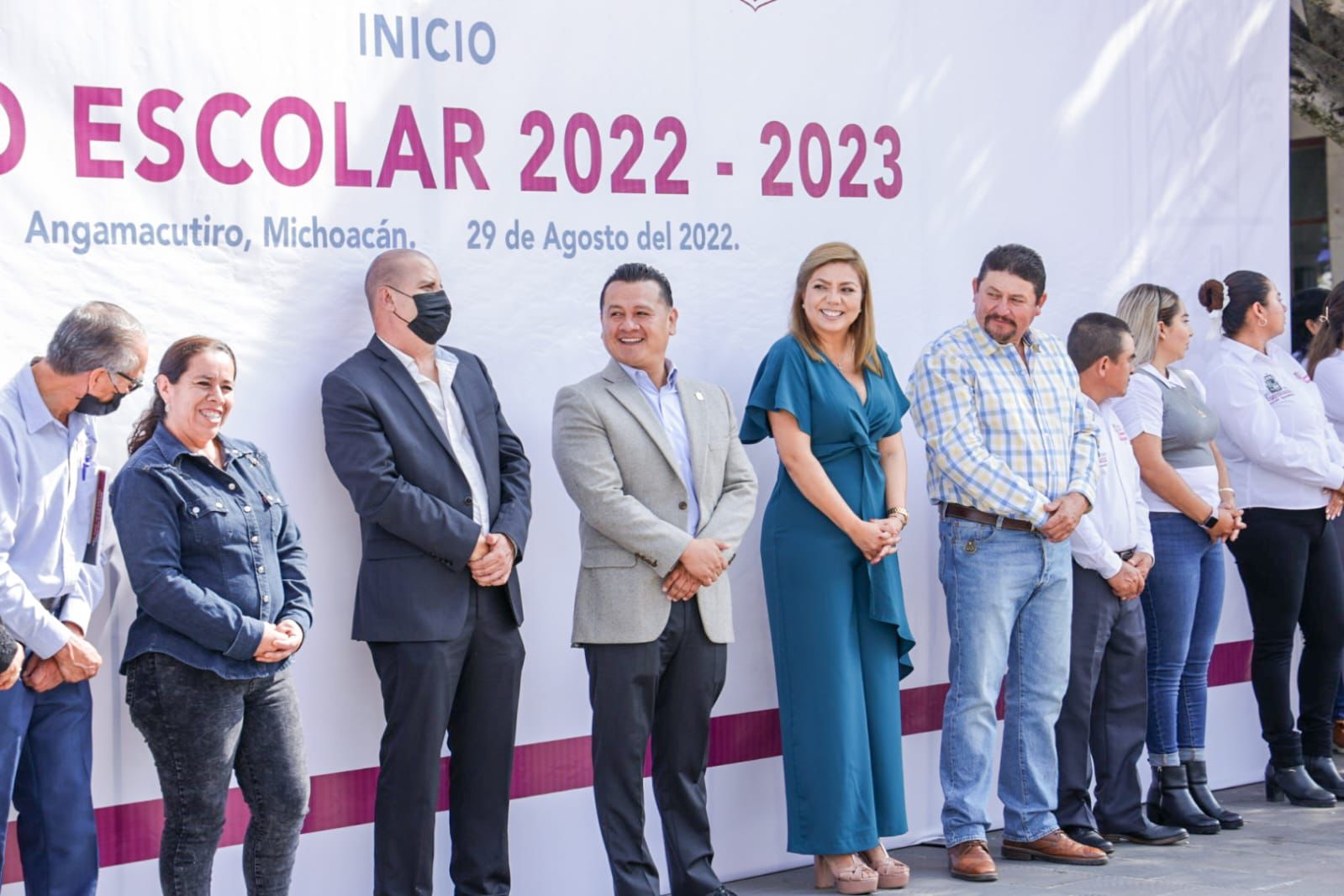 Angamacutiro, Michoacán, 29 de agosto de 2022.- “A través de la educación estamos impulsando la transformación de Michoacán, siempre de la mano de las niñas, de los niños, de las maestras y de los maestros”, así lo dijo el secretario de Gobierno Carlos Torres Piña, al inaugurar este día en esta cabecera municipal, el Ciclo Escolar 2022 – 2023.