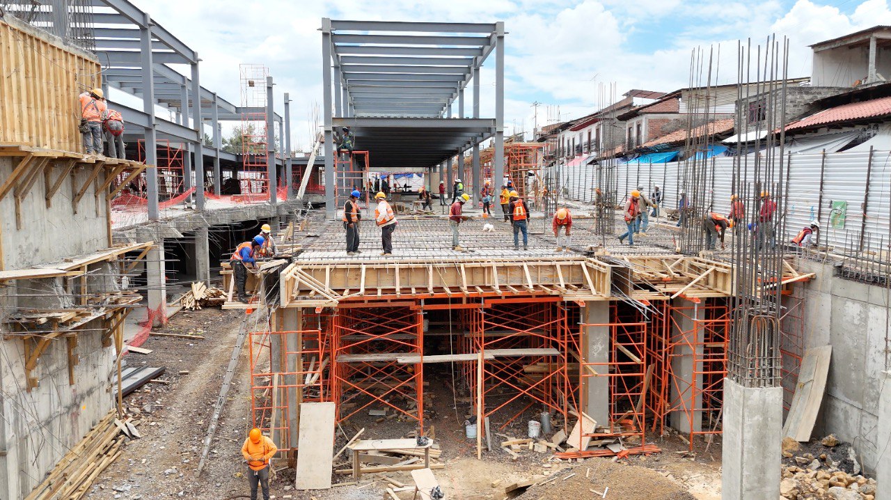 En este momento se están efectuando los trabajos de albañilería y acabados, y se comenzará con la construcción de los módulos de comerciantes y las instalaciones hidrosanitarias, eléctricas y especiales, tanto para los edificios A como y B.