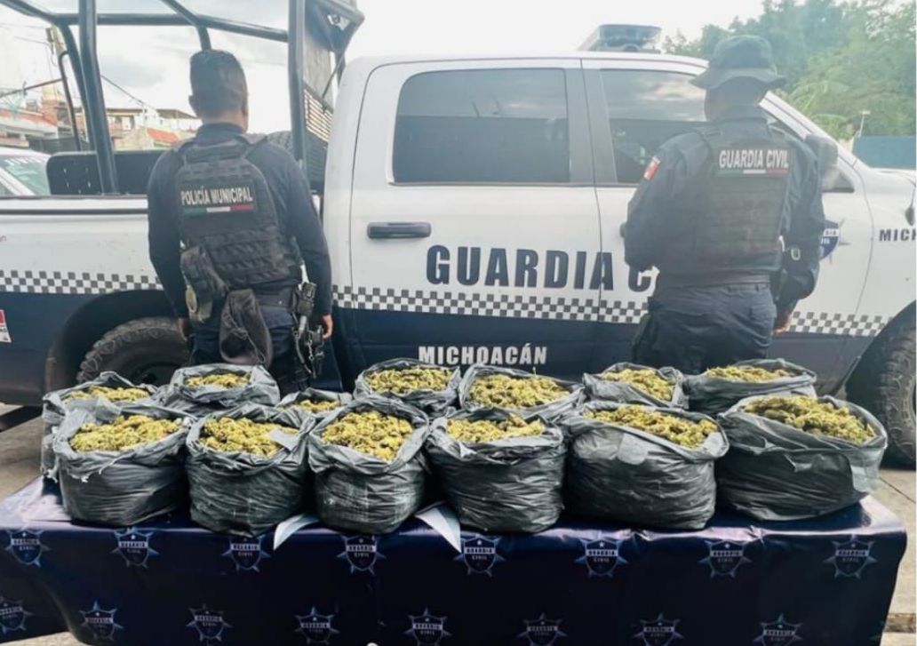 Jacona, Michoacán a 09 de Julio del 2023.- En seguimiento al esquema de seguridad coordinado que se implementa en este municipio y sus demarcaciones colindantes, los elementos de la Secretaría de Seguridad Pública (SSP), y de la Policía Municipal, detuvieron a una persona del sexo masculino en posesión de una caja que contenía aproximadamente 12.4 kilos de hierba verde seca, al parecer marihuana.