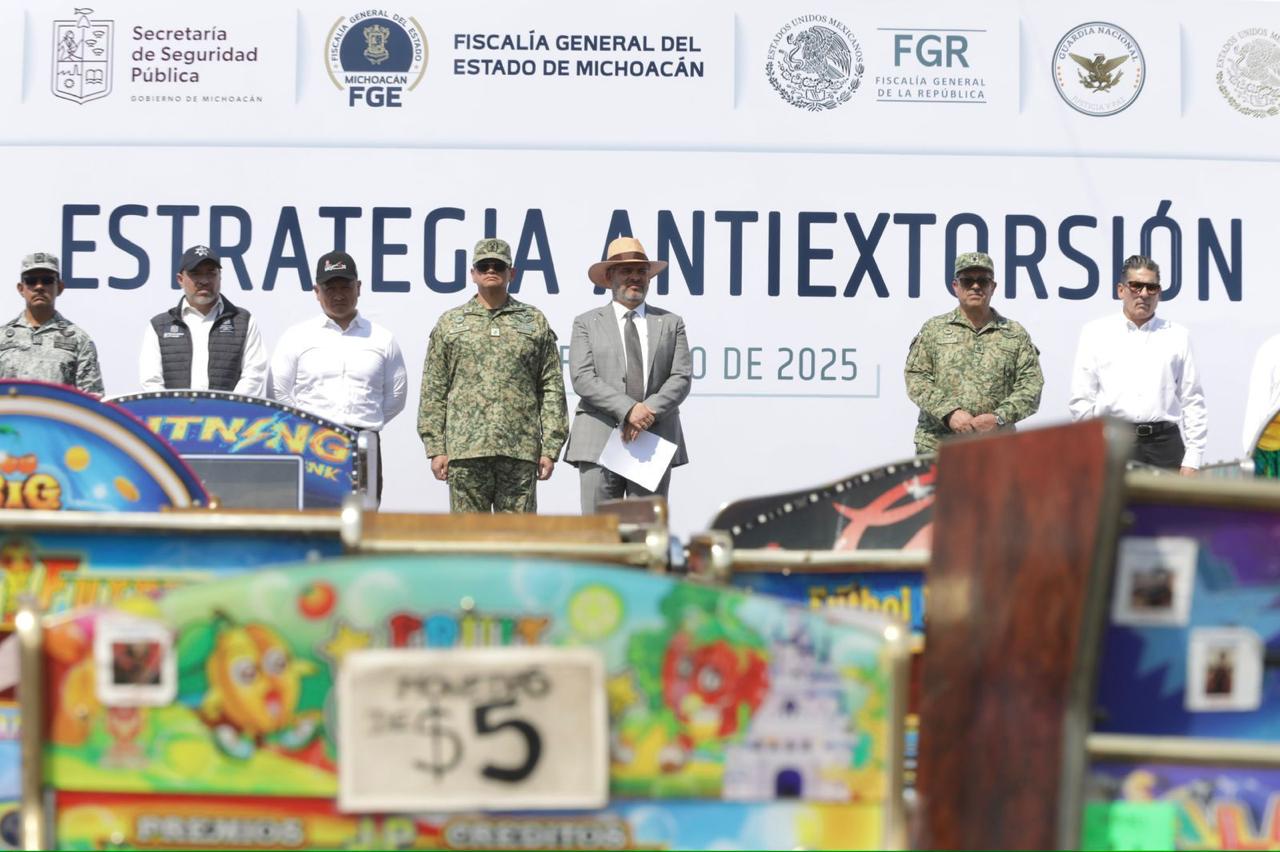 Informó que en municipios como Morelia, Uruapan, Zitácuaro, Zamora, Lázaro Cárdenas, Apatzingán y Maravatío se han decomisado más de 2 mil 500 máquinas operadas fuera de la ley y financiadas por redes delincuenciales, actividad que representa 600 millones de pesos semanales a nivel nacional.