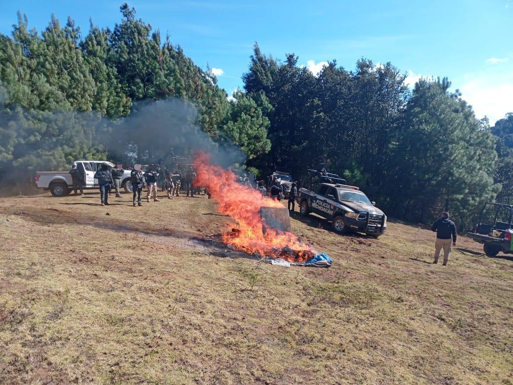 A través de diversos esquemas de seguridad realizados de manera coordinada entre oficiales de la Policía Michoacán y personal de las citadas instituciones, durante la última semana, se logró la ubicación y destrucción de 11 campamentos en los que fueron localizados indicios que permitieron establecer que dichos sitios eran utilizados para la comisión de hechos delictuosos.