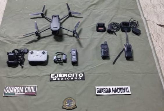Apatzingán, Michoacán a 07 de Diciembre del 2024.- En coordinación interinstitucional entre las secretarías de Seguridad Pública (SSP), Defensa Nacional (Defensa), y Guardia Nacional (GN); se detuvo a un hombre en posesión de artefactos explosivos improvisados, un dron, equipo de radio de comunicación y un vehículo.