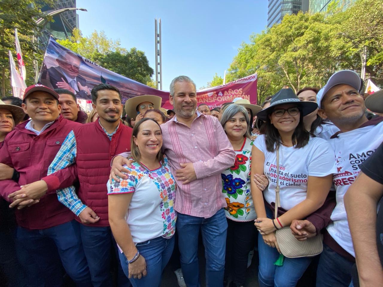 «Es un honor estar con Obrador, aquí está el pueblo de Michoacán y vamos a seguir marchando al lado de este gran hombre que ya se ganó un lugar en la historia de los mexicanos y de las y los michoacanos con todo el respaldo que nos ha dado», enfatizó.
