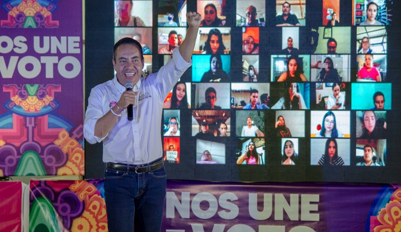 Morelia, Michoacán 26 de mayo 2021.- Por primera vez en la historia de Michoacán, se llevó a cabo una reunión virtual que congregó a más de 10 mil personas en torno al candidato del Equipo Por Michoacán, Carlos Herrera Tello. Con ayuda de las nuevas plataformas y la tecnología, se marca un hito en el desarrollo de las campañas políticas haciendo llegar a la militancia de los institutos que lo respaldan un mensaje de innovación y unidad.