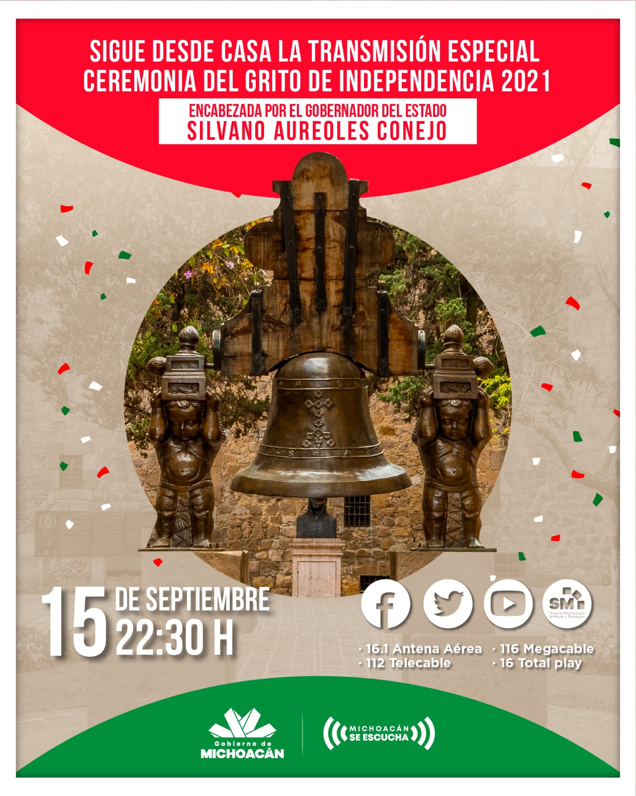 En atención al cuidado de la salud por el COVID-19, en esta ocasión los festejos patrios se realizarán a la distancia, con el objetivo de privilegiar la salud de las y los michoacanos.