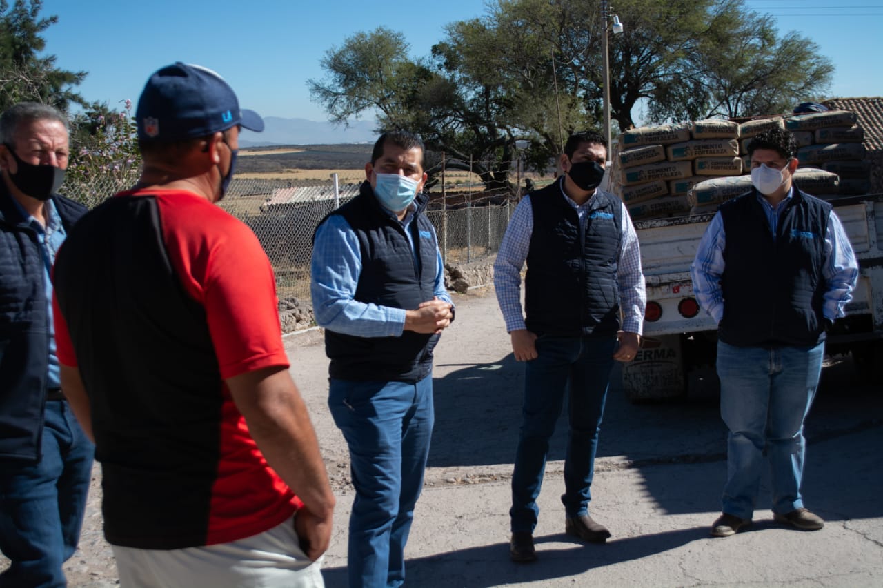 La Piedad, Michoacán a 17 de Febrero del 2021.-En su gira de trabajo por las comunidades rurales, nuestro alcalde Alex Espinoza, visitó esta mañana la comunidad de Jauja para entregar cemento.