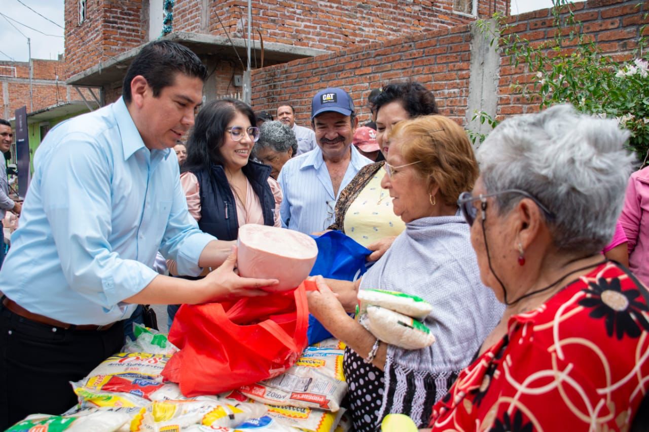 Jamón, jitomate, arroz y frijol fueron los productos repartidos a los vecinos de la calle Durango, en la colonia México, que ahora complementarán su dieta alimenticia de la semana con productos frescos, entregado sin costo alguno en la misión asistencial del programa originado por el DIF, que encabeza la licenciada Vanessa Caratachea.