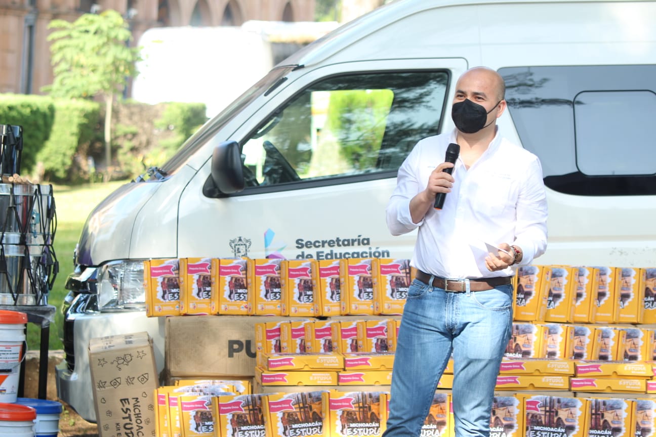 «Me da mucha pena no haber tenido el tiempo suficiente para haber estado con ustedes, sabemos que mantener una escuela como la Normal de Tiripetío no es fácil y representa todo un reto, sin embargo hoy traemos este material y mobiliario para su correcto uso y disfrute de todos ustedes», destacó el Secretario.