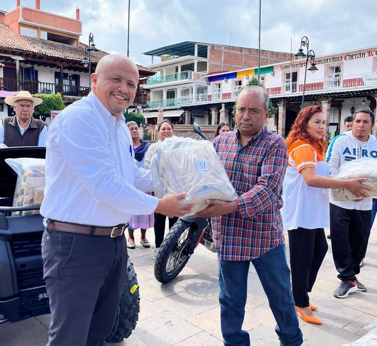 Con la representación del secretario de Gobierno, Carlos Torres Piña, el delegado José Guadalupe Coria Solís, entregó los equipamientos para los elementos de seguridad pertenecientes al Concejo Mayor de Cherán.