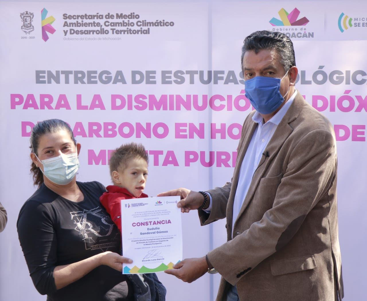 Uruapan, Michoacán, a 29 de diciembre de 2020.- Tras detectar que en las zonas urbanas ubicadas en la periferia de Uruapan aún hay colonias donde las familias cocinan con fogones tradicionales, la Secretaría de Medio Ambiente, Cambio Climático y Desarrollo Territorial, Semaccdet, entregó 8 estufas ecológicas, como parte del segundo ciclo de donaciones que se hicieron a las comunidades de la Meseta Purépecha.
