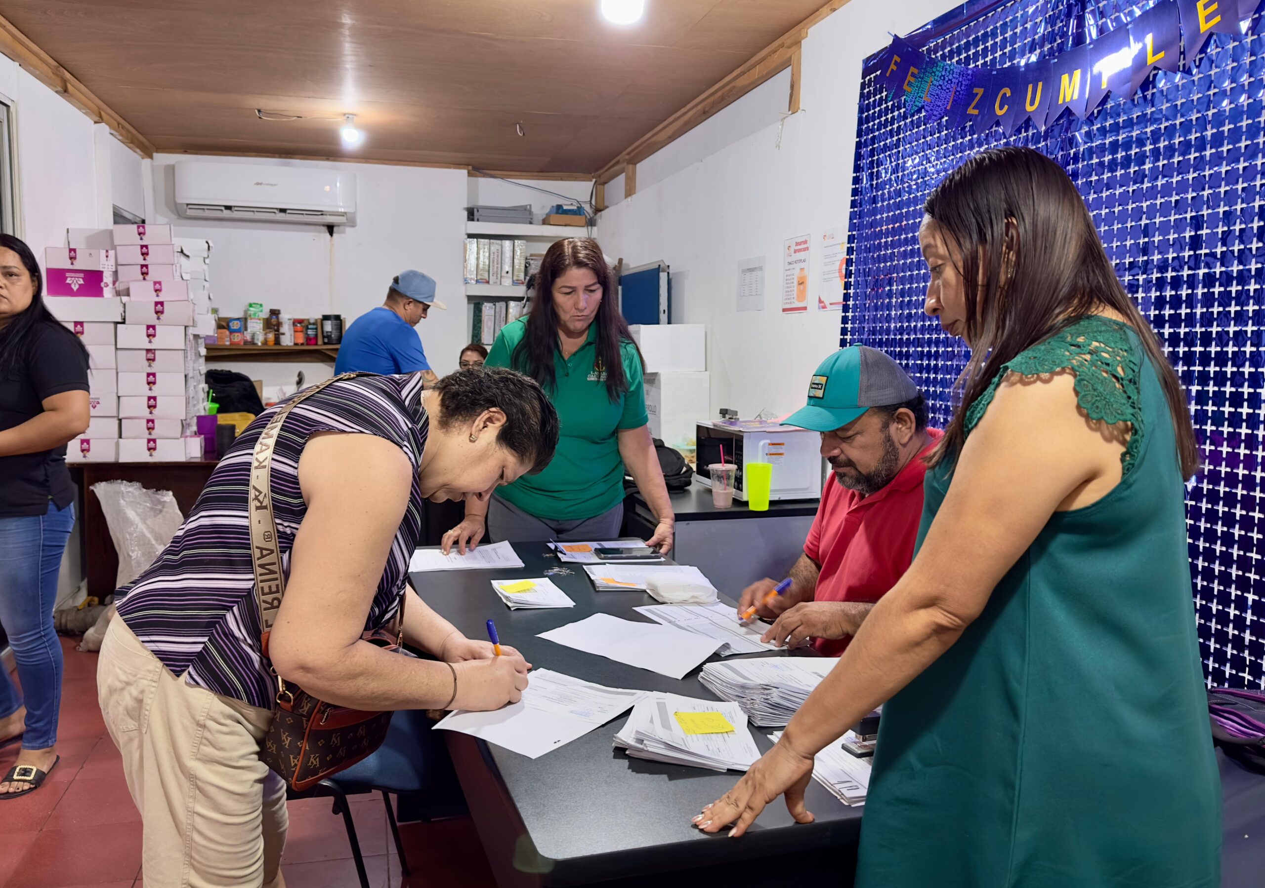La entrega tuvo lugar en las instalaciones del H. Ayuntamiento y fue encabezada por Jaime Miranda Aguilar, coordinador regional de Bienestar en la Costa, e Irma Hidalgo Álvarez, jefa del Departamento de Desarrollo Social Municipal.