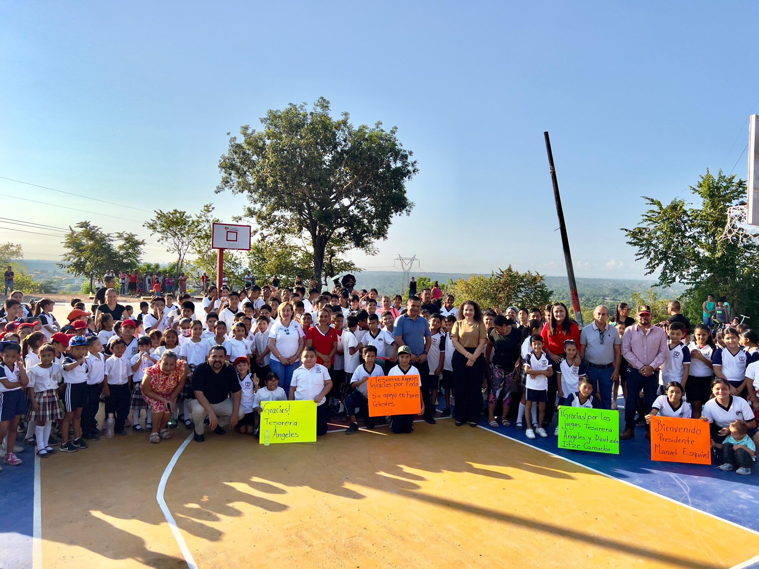 CD. Lázaro Cárdenas, Michacàn a 22 de Noviembre de 2024. Acompañados de alumnos de diverdas instituciones educativas, este viernes autoridades municipales inauguraron la cancha de usos múltiples en la colonia Flores Celestes en la tenencia Las Guacamayas.