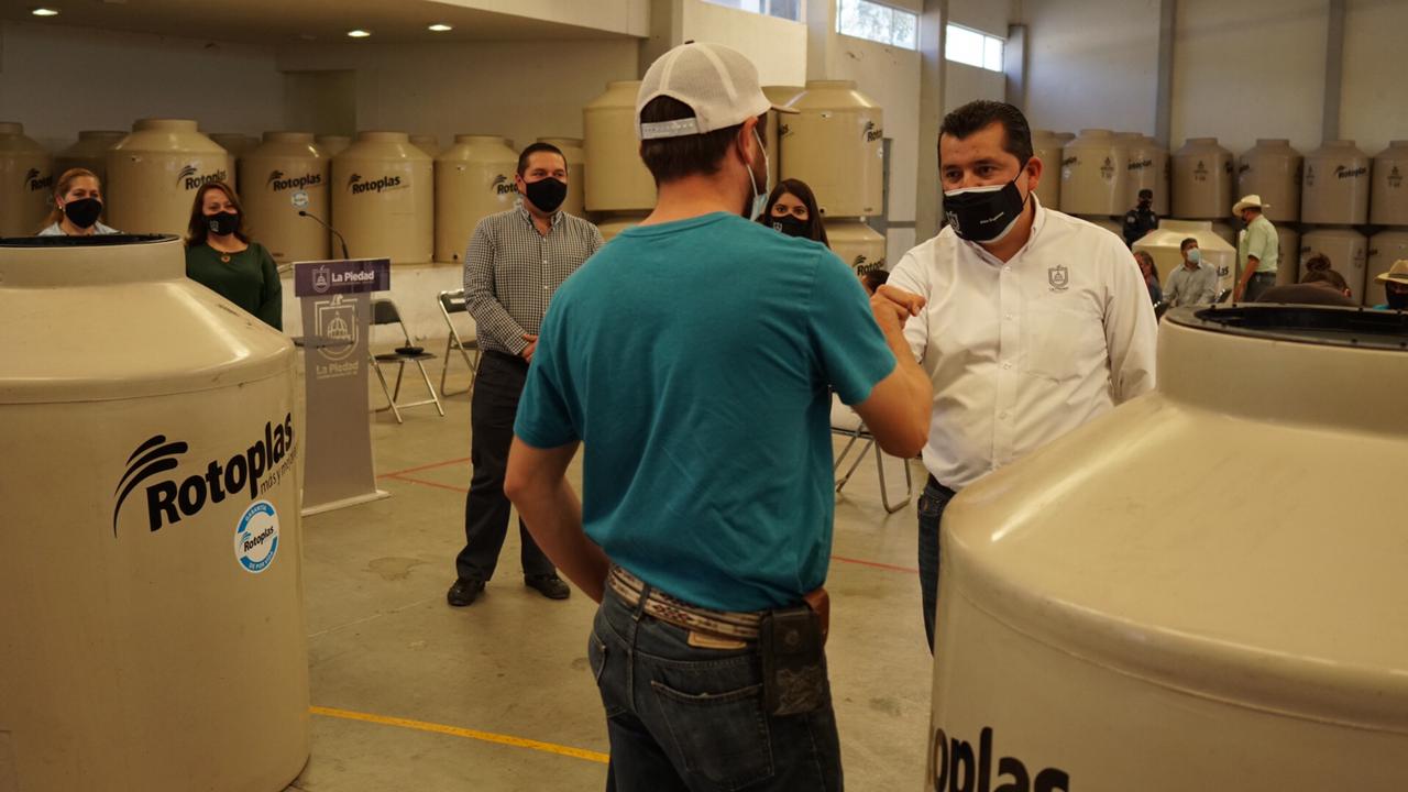 La Piedad, Michoacán a 1 de Marzo del 2021.- Nuestro presidente municipal, Alex Espinoza, comenzó con la entrega de tinacos del programa “Mejoramiento de vivienda a los migrantes”, que promovió la Dirección de Vinculación Internacional por medio de la Fundación “Mariana Trinitaria”.