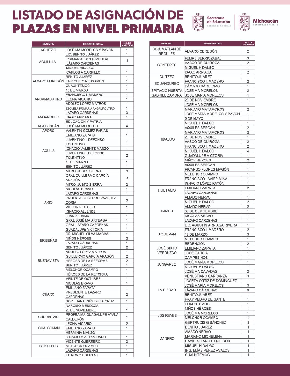 Morelia Michoacán a de Septiembre de 2023. La Secretaría de Educación del Estado (SEE) sigue trabajando para garantizar la educación de las niñas, niños y adolescentes, y da a conocer el listado de las más de 250 escuelas a las que en estos días están llegando docentes, tras la asignación de plazas en nivel primaria.