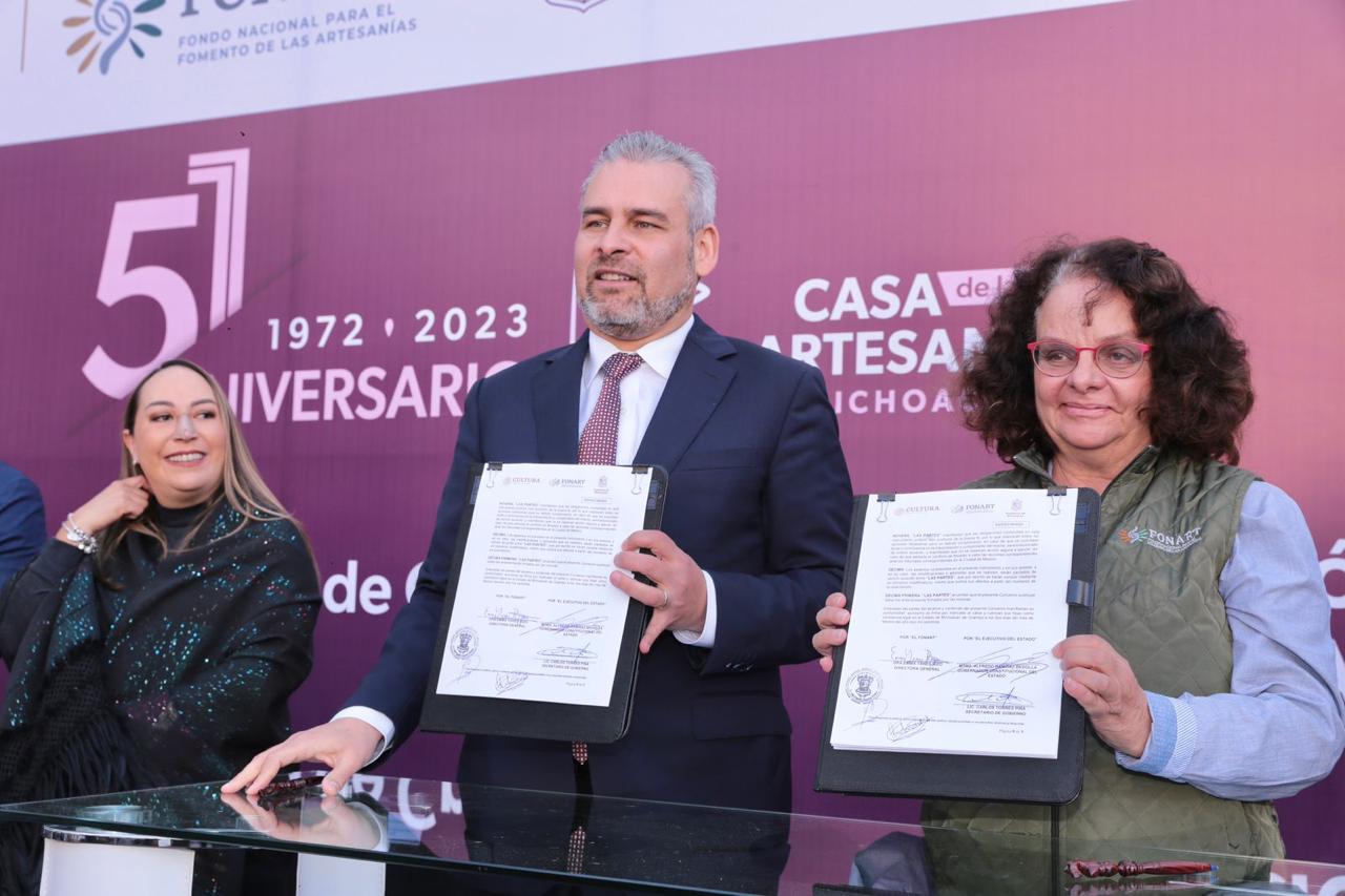 Durante la celebración del 51 aniversario del Instituto del Artesano Michoacano, el mandatario adelantó la organización del magno evento como parte del convenio formalizado este día entre el Gobierno de Michoacán y el Fondo Nacional para el Fomento de las Artesanías (Fonart).