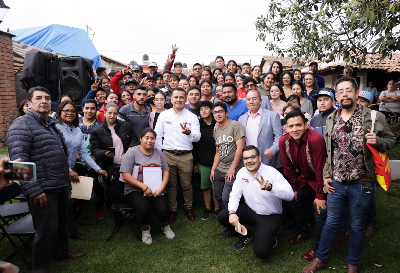 En Áporo, estudiantes simpatizantes de la 4T se sumaron a los esfuerzos que encabeza Carlos Torres Piña para defender el proyecto, al referir que por primera vez pueden acceder a educación universitaria sin salir de sus municipios.