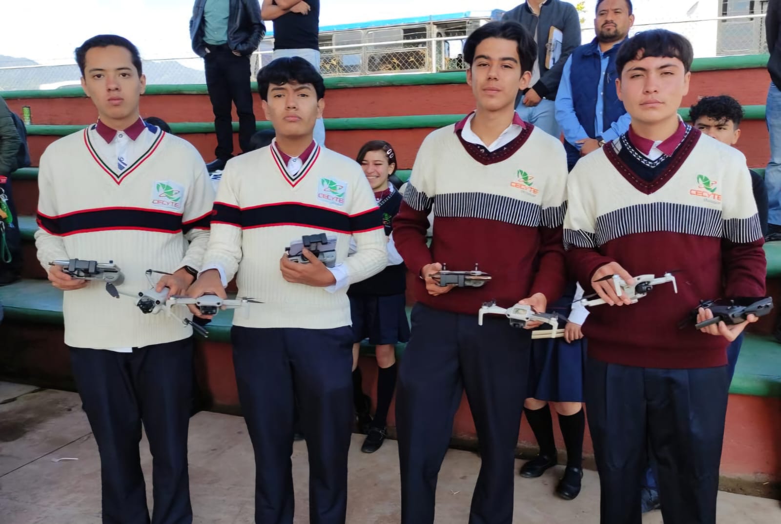 Hidalgo, Michoacán, 30 de Agosto de 2024.- En el marco del inicio del ciclo escolar 2024-2025, estudiantes de la primera generación de la especialidad de Robótica del Colegio de Estudios Científicos y Tecnológicos del Estado de Michoacán (Cecytem) dieron una demostración de pilotaje de drones.
