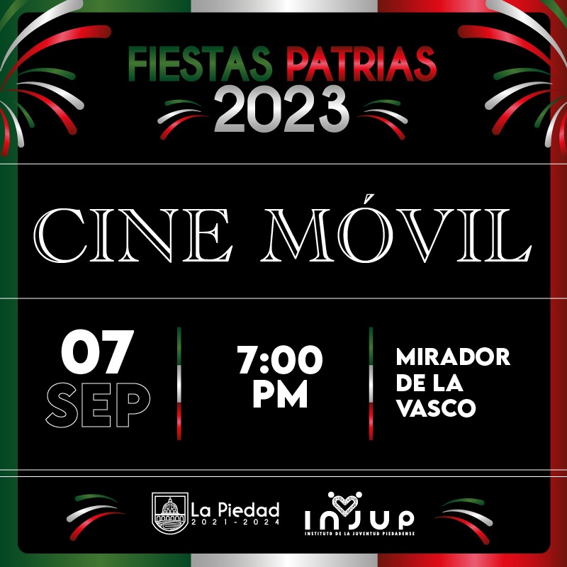 Dentro de las actividades que están próximas a realizarse este 7 de septiembre son la coronación de la Reina del Adulto Mayor de La Piedad 2023, evento que se llevará a cabo en punto de las 7:00 pm en el Centro Histórico, a su vez, también se tiene programado el “Cine Móvil”, donde se presentará una función de cine en el mirador de la colonia Vasco de Quiroga a las 7:00 pm.
