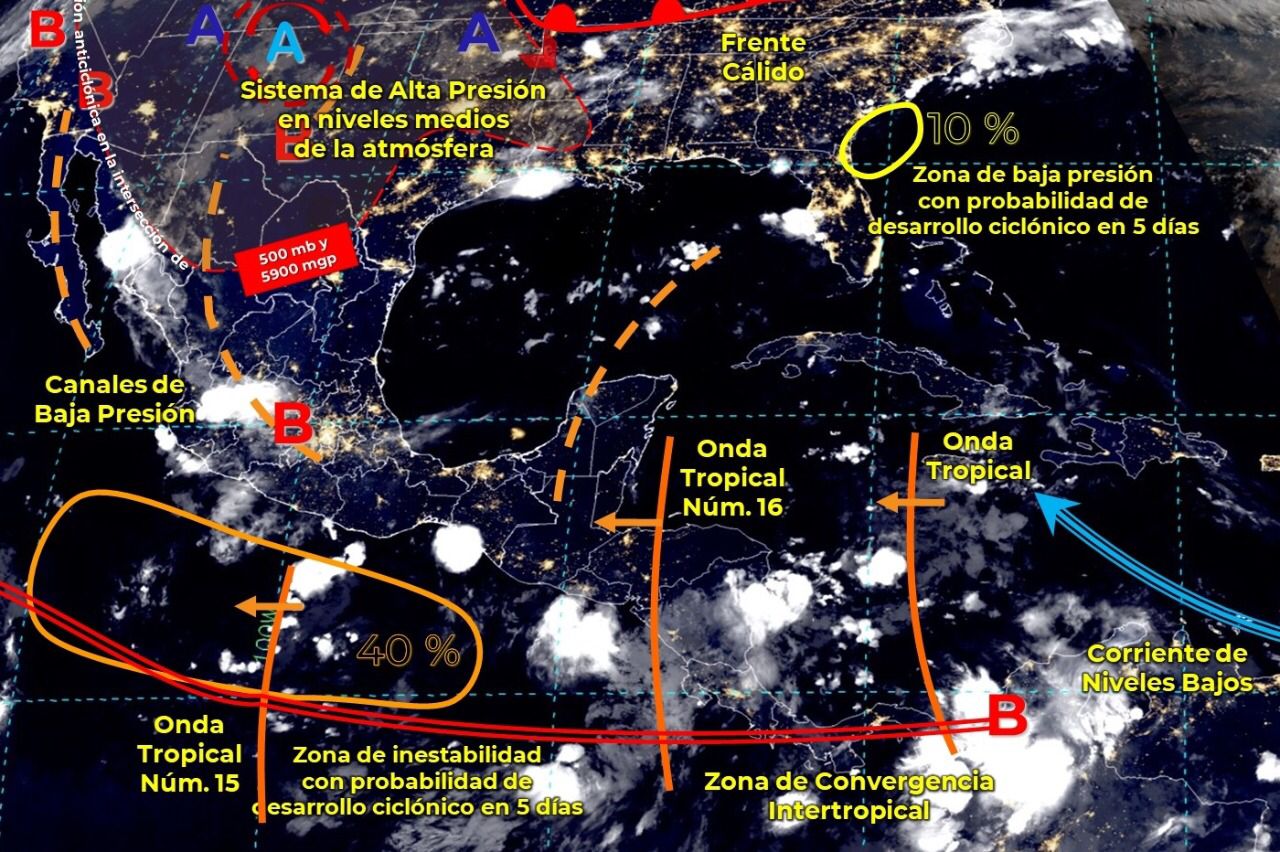 Dicho fenómeno, indica los pronósticos del Servicio Meteorológico Nacional, interaccionará con un canal de baja presión, que se extenderá sobre la Sierra Madre Occidental e inestabilidad atmosférica superior, por lo que se pronostican lluvias fuertes a puntuales muy fuertes en parte del estado.