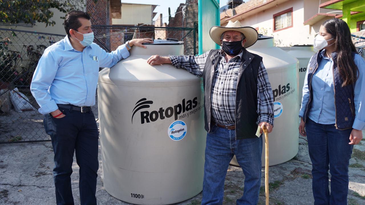 Por medio de este esquema de trabajo se estarán entregando 293 tinacos para favorecer a los pobladores de las comunidades de Los Guajes, Paredones, Jauja, el Zapote, Los Ayala, El Tigre y Ticuítaco. Previamente se entregaron a los vecinos de Guanajuatillo, Acuitzio, Zaragoza y Río Grande. Entregarán en otras comunidades.