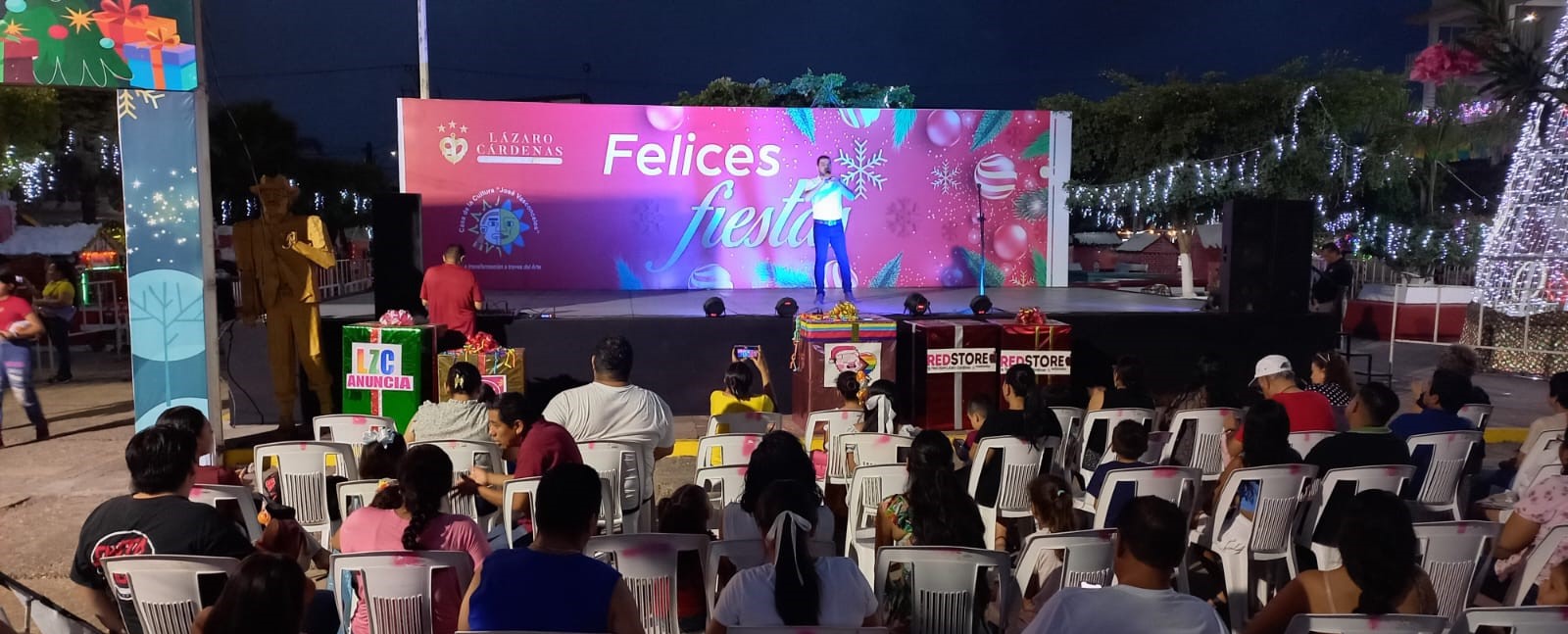 Hoy domingo 15 de diciembre, el Festival Navideño continuará con más actividades y sorpresas a partir de las 6:00 p.m. en la Pérgola Municipal. El evento es gratuito y está dirigido a todas las familias de Lázaro Cárdenas y sus tenencias, quienes podrán disfrutar de un programa lleno de música, poesía, cuentos, talleres y danza.