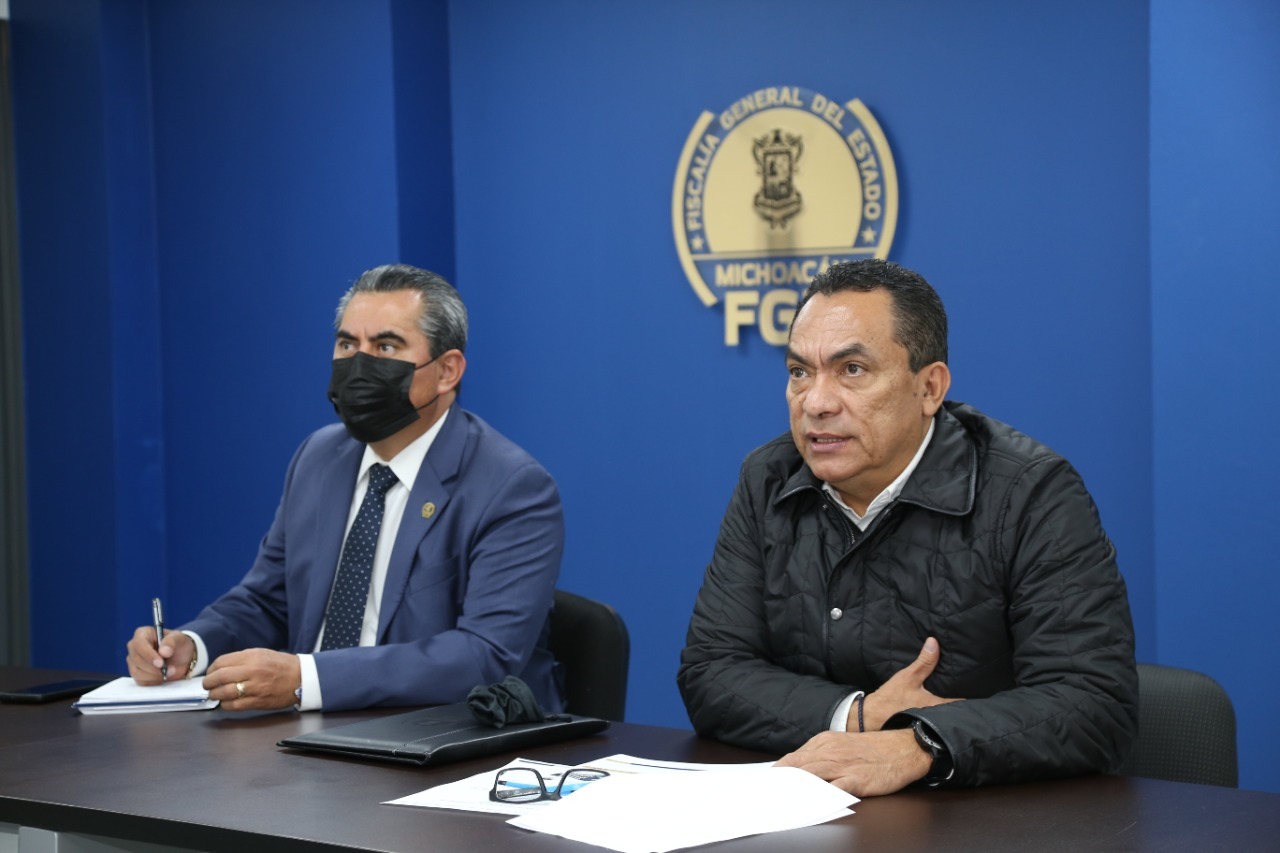 Morelia, Michoacán, a 19 de enero de 2022.- En atención al compromiso interinstitucional de intensificar acciones coordinadas para el cumplimiento de órdenes de aprehensión, el titular de la Fiscalía General del Estado de Michoacán (FGE), Adrián López Solís, sostuvo un encuentro virtual con el secretario de Seguridad Pública, José Alfredo Ortega Reyes, con quien refrendó su disposición de trabajar de manera conjunta para abatir la incidencia delictiva en la entidad.