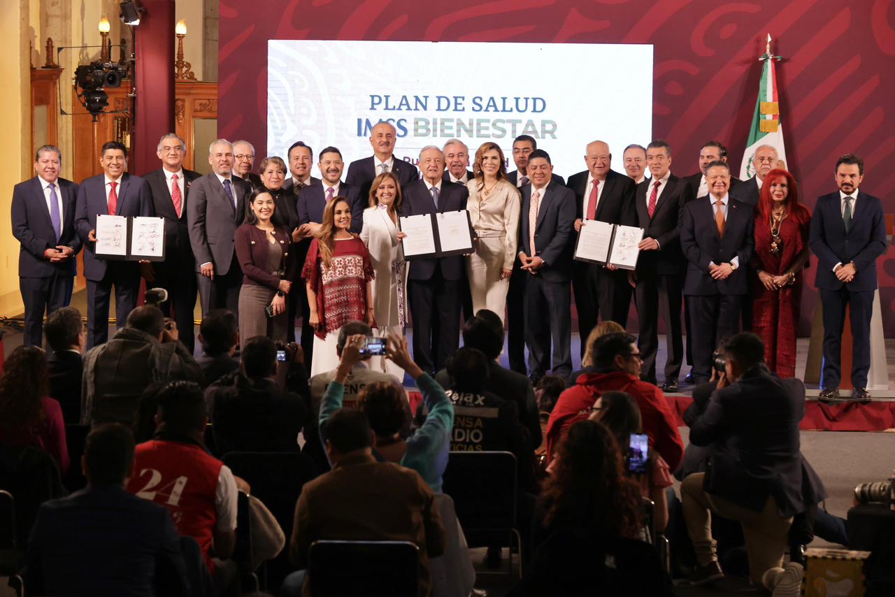 Durante la firma realizada en Palacio Nacional, el mandatario señaló que “la suma de Michoacán, permitirá ampliar y modernizar los servicios del sector, con el que se transfieren al modelo IMSS Bienestar, 27 hospitales regionales y 364 centros de salud».