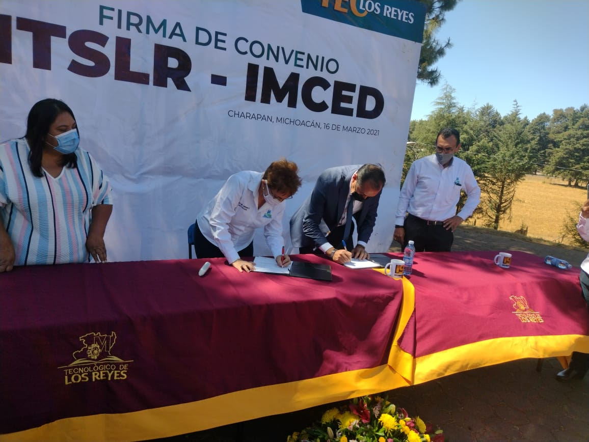 Charapan, Michoacán, a 16 de marzo de 2021.- Hoy fue firmado un convenio de colaboración entre los Institutos Michoacano de Ciencias de la Educación (IMCED) y Tecnológico de Los Reyes, cuyo propósito es el de generar las condiciones académicas, tecnológicas, económicas y demás necesarias para tener la coordinación, colaboración y vinculación efectiva y eficiente que permita desarrollar, ejecutar e implementar acciones en beneficio de ambas dependencias, de sus estudiantes y docentes, además de regularizar el uso de las instalaciones propiedad del IMCED por parte del Tec Los Reyes.