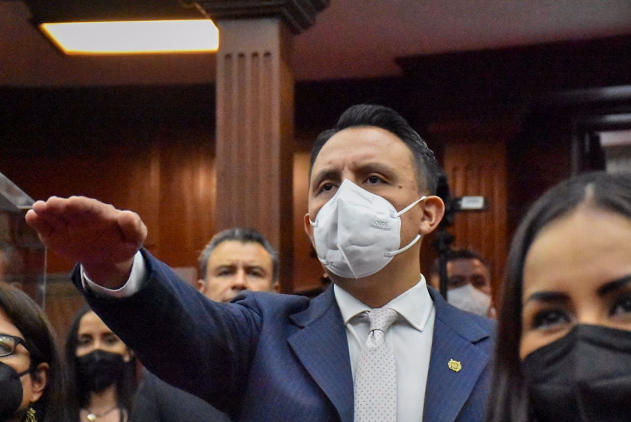 Morelia, Michoacán, 23 de marzo de 2022.- El Pleno del Congreso del Estado tomó protesta a Francisco Arroyo Mondragón como Titular del Órgano Interno de Control del Tribunal Electoral del Estado de Michoacán (TEEM), luego de que fuera considerado por las y los legisladores integrantes de la 75 Legislatura como el mejor perfil para ocupar el cargo.