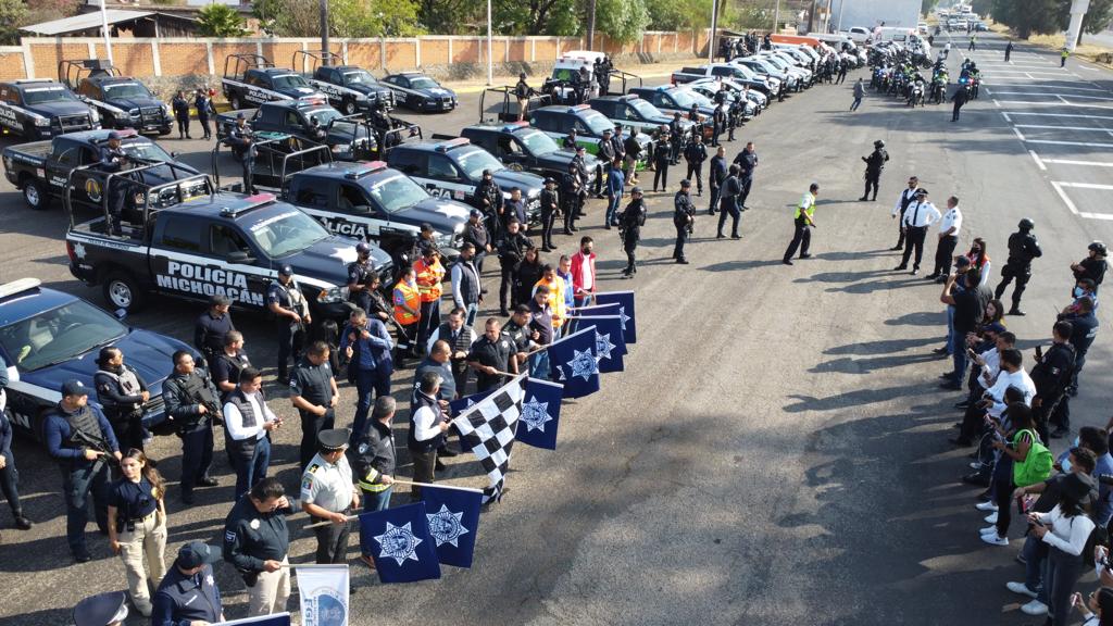 Morelia, Michoacán, 8 de abril del 2022.- La Secretaría de Seguridad Pública en coordinación con la Guardia Nacional (GN), la Fiscalía General del Estado (FGE), la Policía Municipal, la Cruz Roja y Protección Civil, dio el banderazo de arranque del Operativo de Prevención y Vigilancia para Semana Santa.