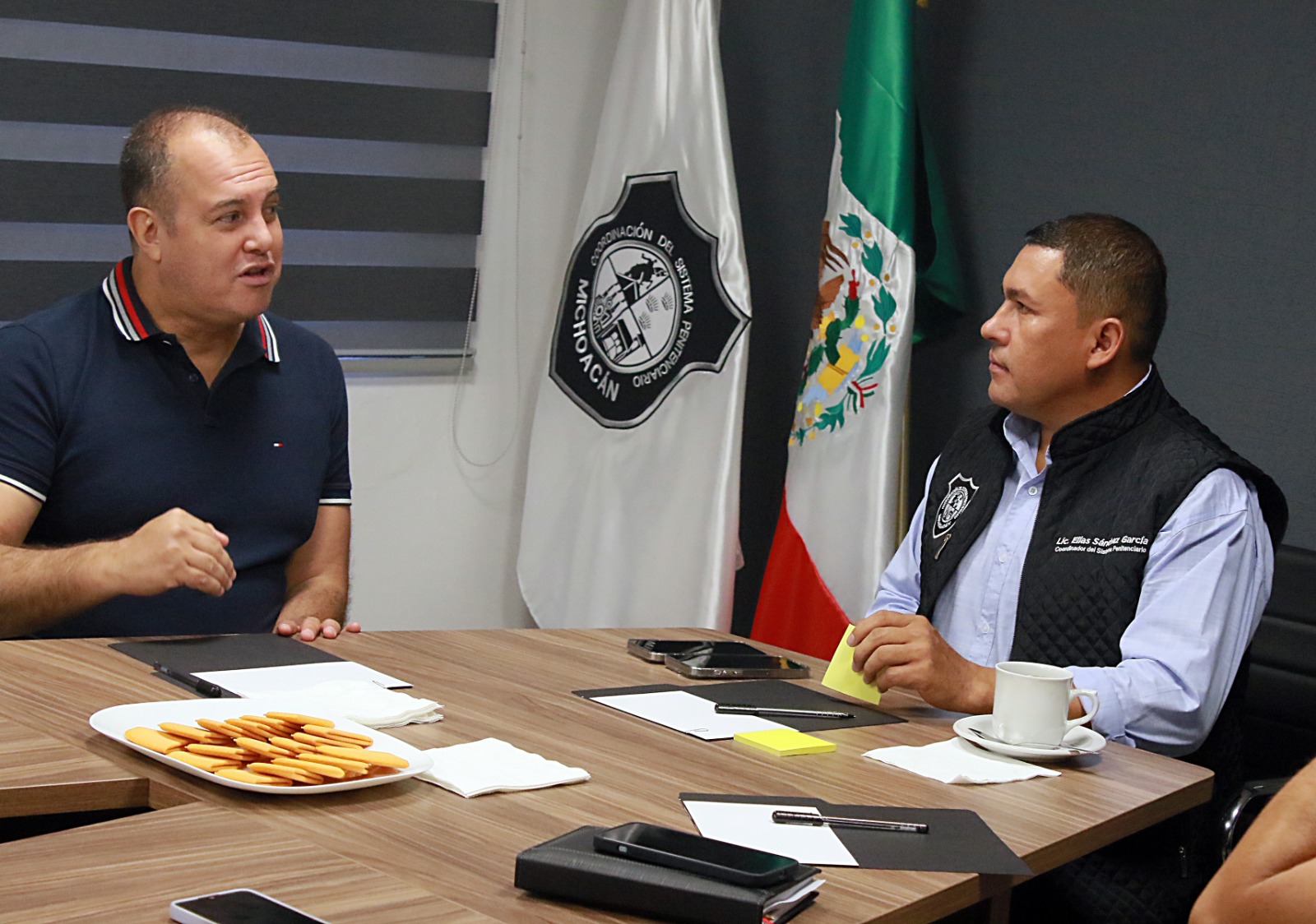 Morelia, Michoacán, 3 de Septiembre de 2024.- A mantener una estrecha coordinación que permita garantizar los derechos humanos de las personas privadas de la libertad en los once centros penitenciarios del estado y la Unidad Especializada para Adolescentes y Adultos Jóvenes, así como el personal de seguridad y custodia y administrativo, se comprometieron los titulares del Sistema Penitenciario, Elías Sánchez García y de la Comisión Estatal de Derechos Humanos, Marco Antonio Tinoco Álvarez.