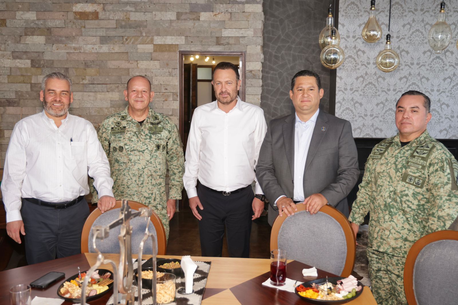 Querétaro a 30 de Mayo de 2023.- El gobernador Alfredo Ramírez Bedolla y sus homólogos de Querétaro, Mauricio Kuri González y de Guanajuato, Diego Sinhue Rodríguez Vallejo, sostuvieron una reunión con el comandante de la XII Región Militar, Enrique Covarrubias López, para reforzar la estrategia de seguridad en los estados.