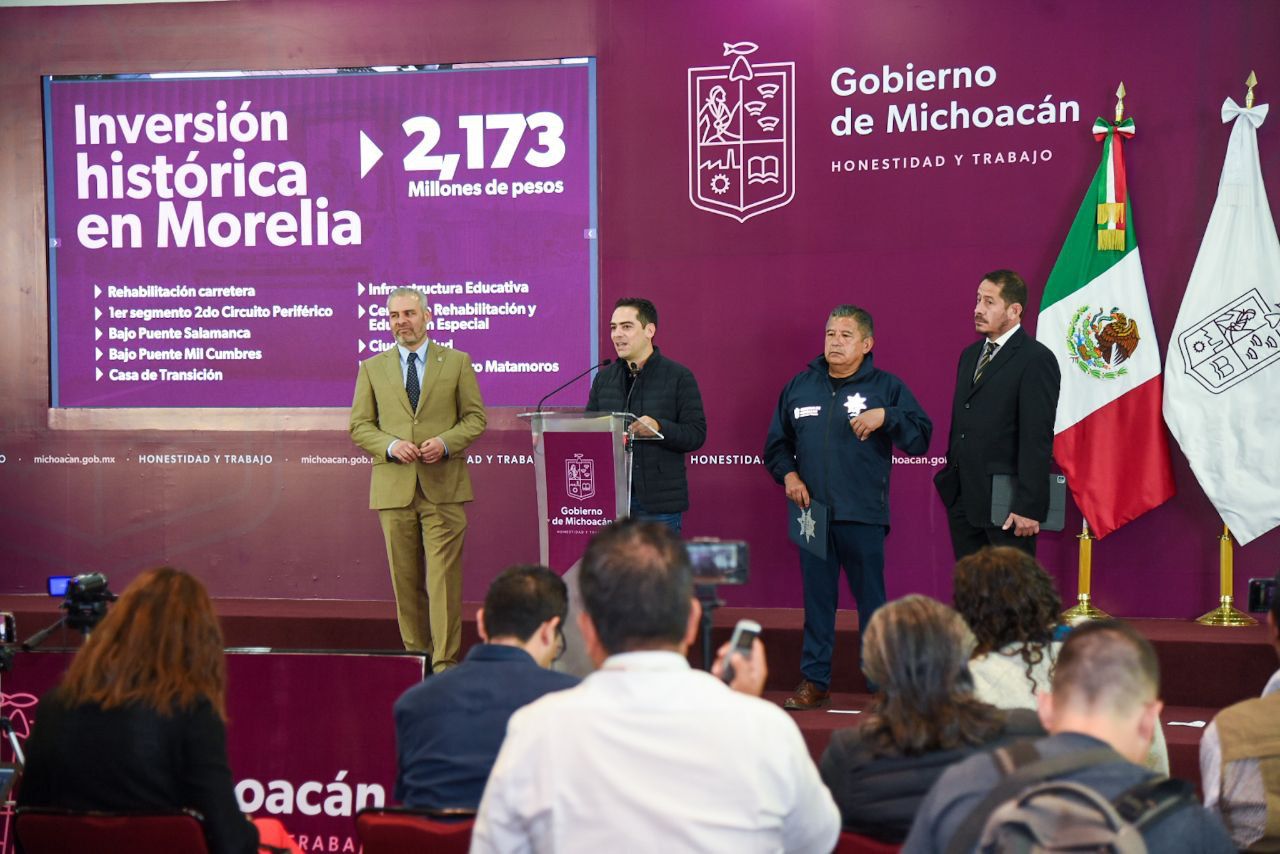 En rueda de prensa del gobernador Alfredo Ramírez Bedolla, el secretario de Comunicaciones y Obras Públicas, Rogelio Zarazúa Sánchez, expuso que se trata de la carretera Cointzio- La Huerta, la iluminación y mantenimiento del ramal Camelinas y del periférico de Morelia, en donde se invierten 267.1 millones de pesos.