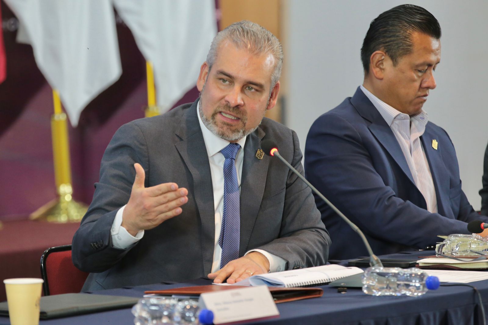 En mesa de trabajo encabezada por el gobernador Alfredo Ramírez Bedolla y con la participación del coordinador nacional Antisecuestros, Marco Antonio Vargas González, los titulares de la Secretaría de Seguridad Pública (SSP), Fiscalía General del Estado (FGE) y Poder Judicial expusieron la situación actual de este tipo de incidencia así como los planes operativos y administrativos para atender y fortalecer lo establecido en el Código Penal en materia de extorsión.