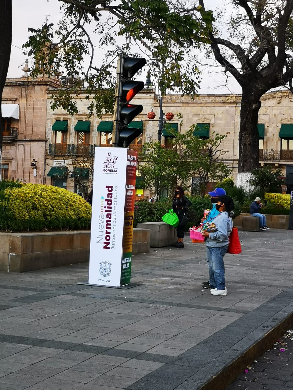 Dicha acción permitirá a los morelianos conocer y visualizar los colores del riesgo epidémico en el que se encuentre el municipio y así la ciudadanía genere conciencia del uso del espacio público. Lo anterior mediante la colocación de tótems ubicados en plazas como: Melchor Ocampo; Valladolid; Jardín de las Rosas; y Obelisco al General Lázaro Cárdenas.