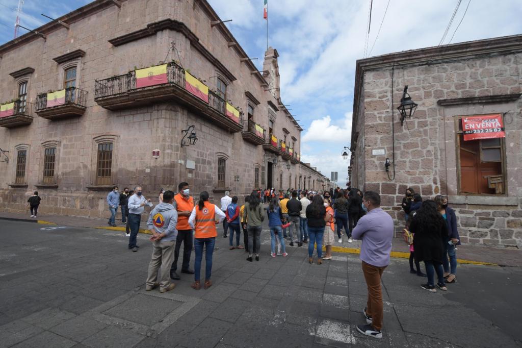 Morelia, Michoacán; a 21 de junio del 2021.- El Gobierno de Morelia realizó un ejercicio de desalojo de Palacio Municipal este lunes y así unirse al Primer Simulacro Nacional 2021, en el que el personal municipal abandonó el inmueble en casi 11 minutos por un sismo registrado, destacó el coordinador de Protección Civil y Bomberos de la ciudad, Rogelio Rangel Reguera.