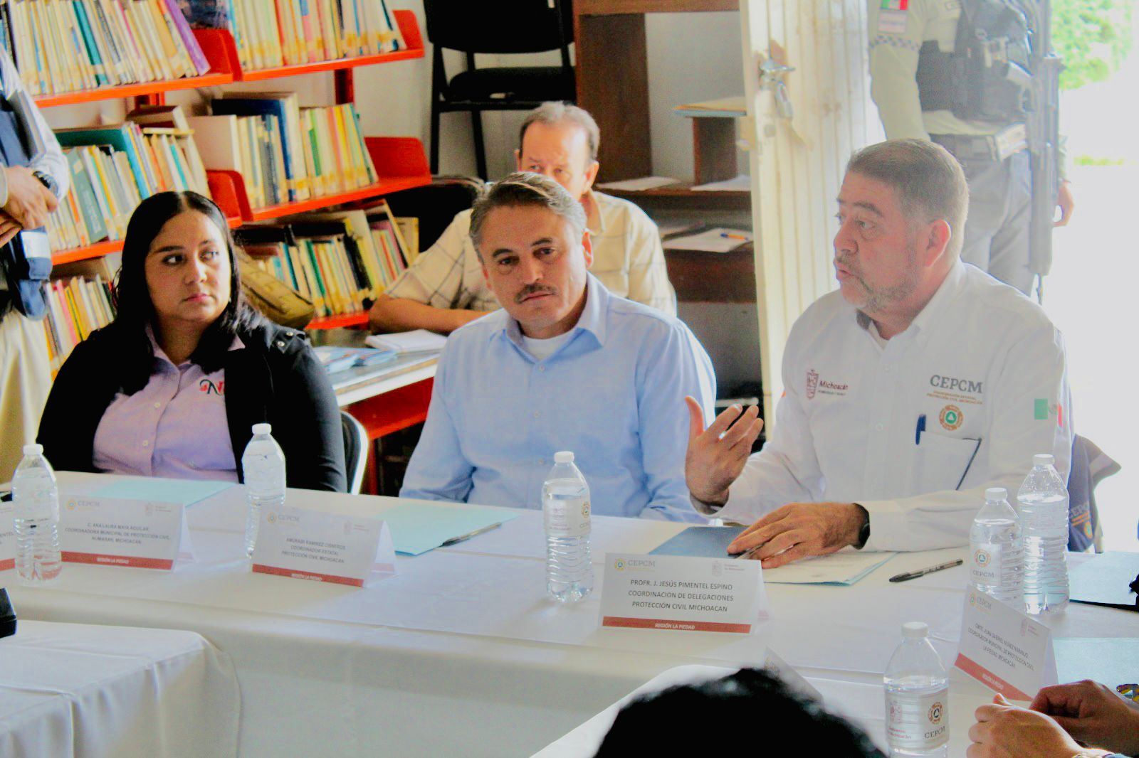 Ante la presencia del alcalde José Díaz Camarena y representantes de la Coordinación Estatal de Protección Civil (CEPCM), se revisaron estrategias y líneas de acción inmediata ante cualquier siniestro o emergencia, debido a las recientes lluvias que se ha presentado en la región.