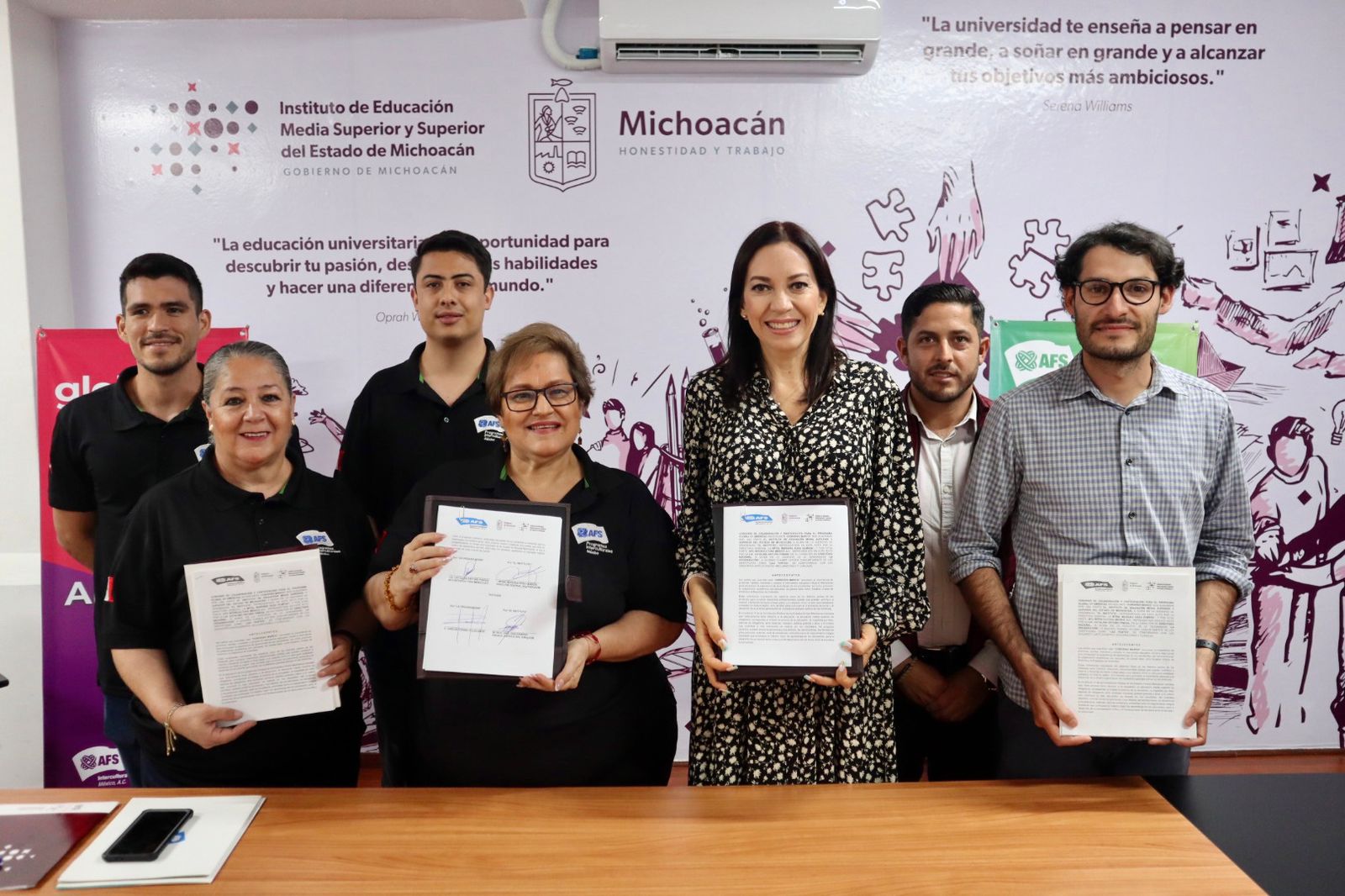 Morelia Michoacán a 05 de Septiembre de 2023.- El Instituto de Educación Media Superior y Superior del Estado (IEMSySEM), en convenio con la AFS México (American Field Service), entregará 100 becas educativas en beneficio de estudiantes de nivel bachillerato y docentes de subsistemas estatales de Michoacán.