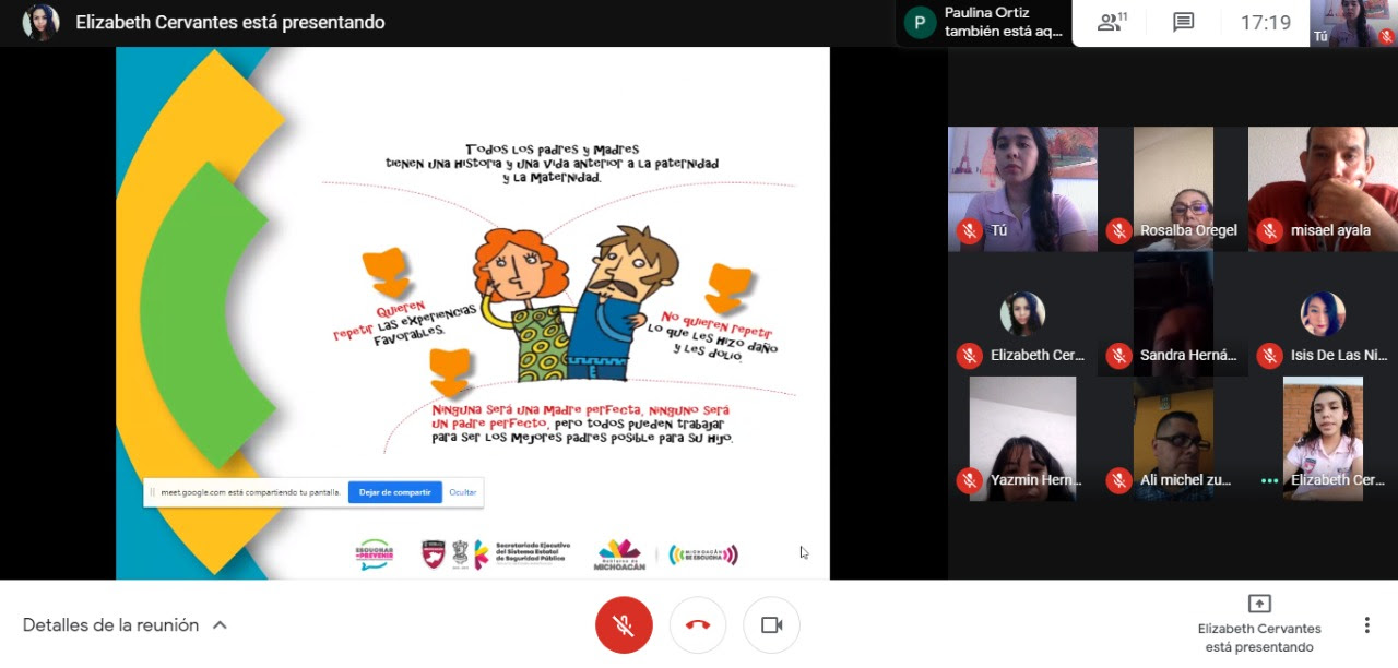 “En el taller realizado de forma virtual se abordaron los tipos y pautas de Crianza Positiva, así como algunos indicadores de conductas de riesgo en las y los adolescentes, con algunas recomendaciones sobre el uso de las nuevas tecnologías en medios digitales, principalmente en la privacidad de datos personales y fotografías a publicar en redes sociales”.