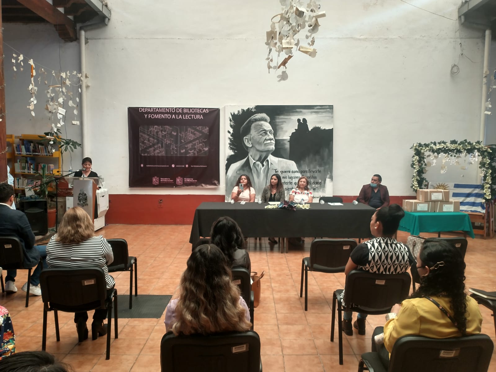El director de Educación Artística y Desarrollo Cultural, Juan Iriarte, así como jefa de Departamento deBibliotecas y Fomento a la Lectura, Miriam Domínguez, son los encargados de esta labor, misma que se pudo realizar en el marco de la XXI edición de la Feria Internacional del Libro Uruapan 2022, en la biblioteca “Lic. Justo Sierra”.