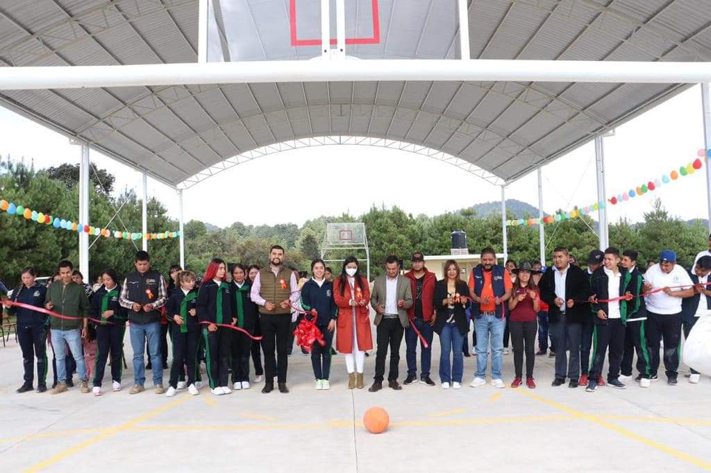 Salvador Escalante, Michoacán, a 29 de noviembre 2022. – La presidenta municipal de Salvador Escalante, Araceli Saucedo Reyes, junto a padres de familia, personal y autoridades educativas, así como alumnado, inauguró la cancha de usos múltiples y techumbre metálica del Telebachillerato No. 142 de la localidad Turirán, en beneficio de cientos de estudiantes.