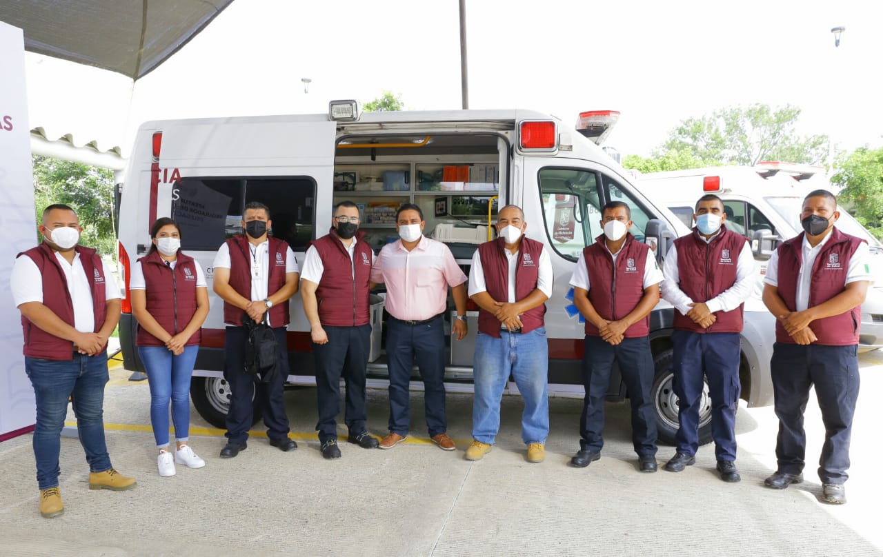 Huetamo, Michoacán, 4 de noviembre del 2021. El gobernador Alfredo Ramírez Bedolla dió el banderazo de arranque a las ambulancias del Centro Regulador de Urgencias Médicas (CRUM), inaugurado en conjunto con el secretario de Salud, Elías Ibarra Torres.