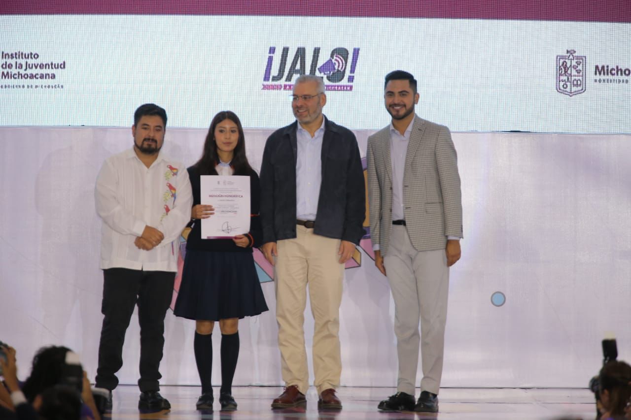“Hoy entregamos estos premios a la juventud michoacana, no solamente para entregar el galardón a una persona, sino para colocar en nuestra mente los temas que le preocupan a las y los michoacanos”, señaló el mandatario estatal, tras reconocer la destacada participación que tienen los jóvenes en el desarrollo de Michoacán.