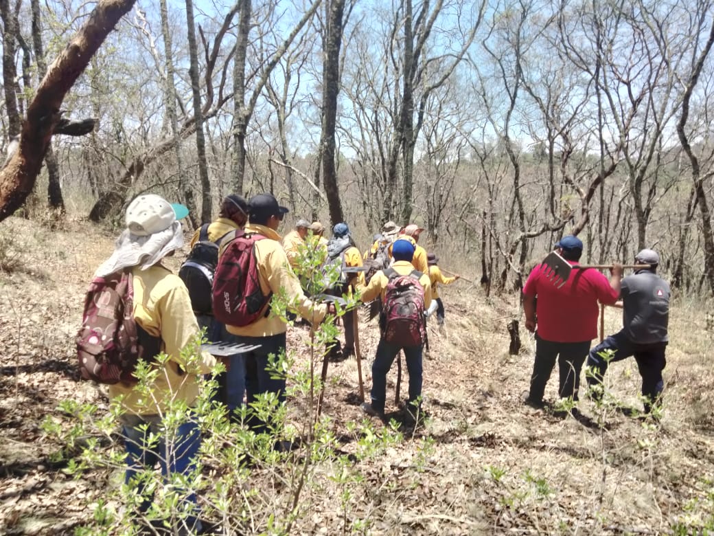 En el sitio continúan labores por tierra con la participación de brigadas de la Comisión Nacional Forestal (Conafor), Cofom, Ayuntamiento, y voluntarios; así como por aire con el helicóptero con helibalde de la Secretaría de Seguridad Pública (SSP), que ha realizado 20 descargas equivalentes a mil 600 litros de agua.