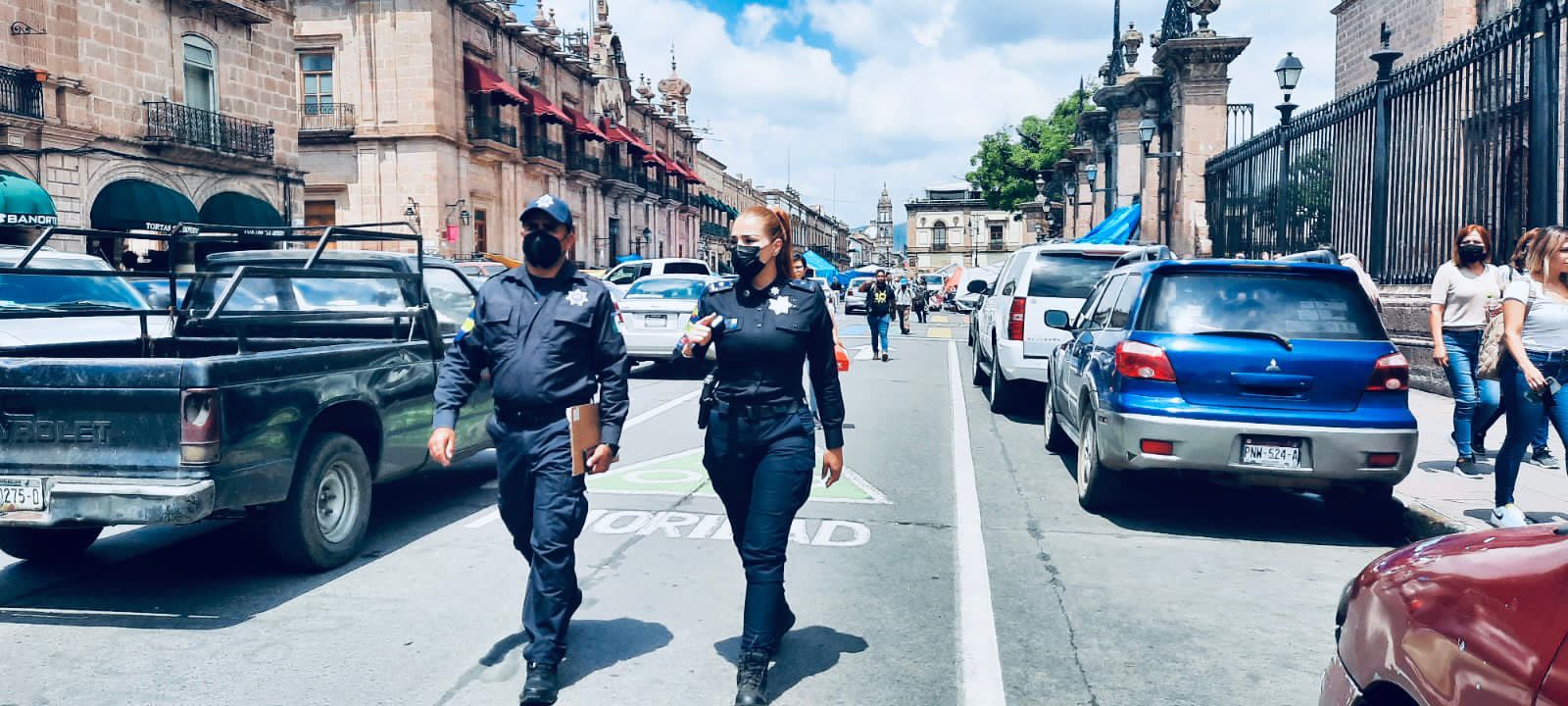 Morelia, Michoacán, 7 de julio del 2022.- Como parte de las labores para brindar una atención especializada a la ciudadanía y a quienes visiten el estado, los elementos de la Secretaría de Seguridad Pública (SSP), iniciaron sus actividades a través del nuevo Agrupamiento Turístico, en Morelia.