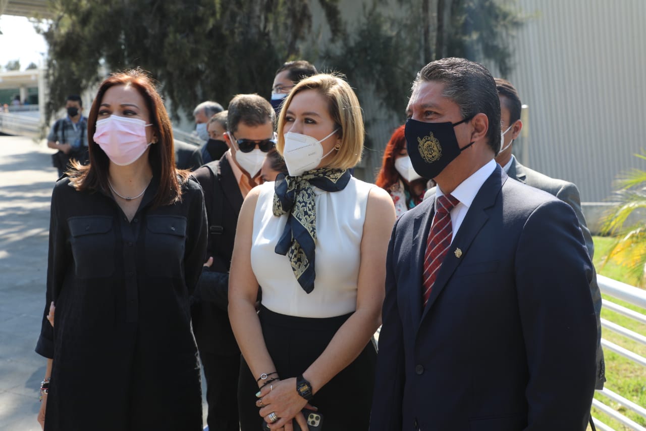 Morelia, Michoacan, 8 de febrero de 2022.- En medio de un estricto protocolo sanitario, el gobernador del estado, Alfredo Ramírez Bedolla, acompañado por la secretaria de Educación, Yarabí Ávila González y el rector de la Universidad Michoacana de San Nicolás de Hidalgo (UMSNH), Raúl Cárdenas Navarro, declaró el inicio del ciclo escolar presencial 2022, en el que destacó que sea su alma mater la que pone el ejemplo, mostrando el carácter y anteponiendo el bien común.