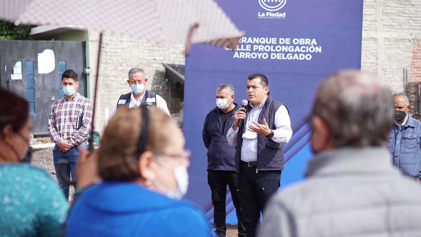 La Piedad Michoacán 28 de junio del 2021.-Nuestro alcalde Alex Espinoza dio el arranque inicial de los trabajos de suministro del sistema de drenaje, agua potable y pavimentación de la calle prolongación Arroyo Delgado que beneficiará a por lo menos cuatro colonias que son; CROC, Primero de Mayo, Las Margaritas y Lázaro Cárdenas.