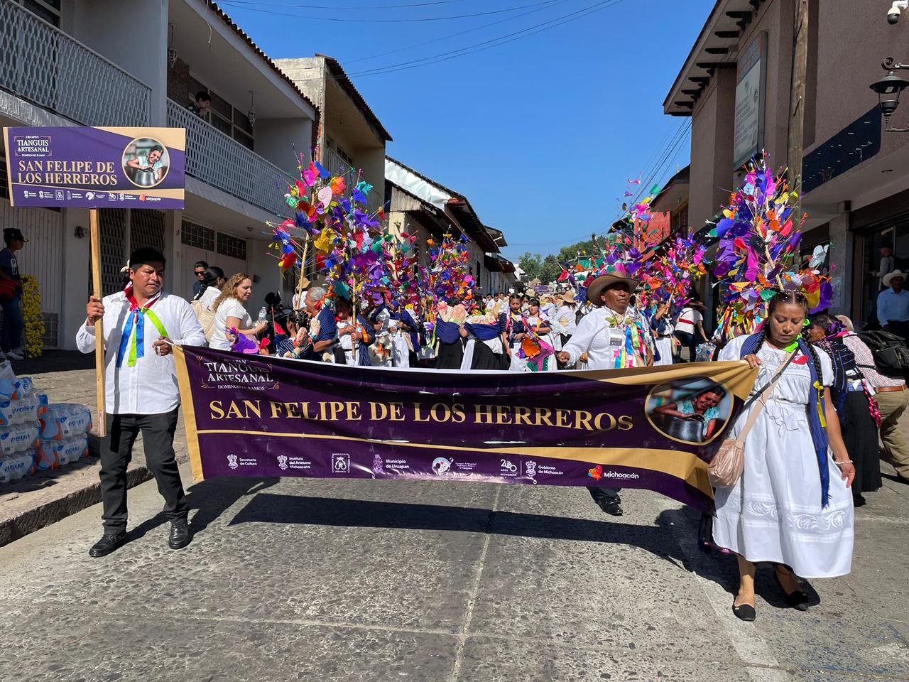 En el arranque del Tianguis Artesanal se dieron cita artesanas y artesanos de las localidades de Santa Fe de la Laguna, San Felipe de los Herreros, Capula, Patamban, Paracho, Cherán, Peribán, San Juan Nuevo, Ocumicho, Pátzcuaro, Tzintzuntzan, Huáncito, Cocucho, Pamatácuaro, Uruapan, Zipiajo, Zacán, Sevina, Opopeo, Uruapan, Tócuaro, entre otras, quienes mostraron el colorido de su comunidad, además de bailar al son de la banda de música.