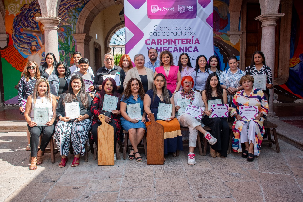 La Piedad, Michoacan a 23 de Agosto del 2024.- El Gobierno Municipal de La Piedad a través del Instituto Municipal de la Mujer, entregó certificados y reconocimientos a las 30 mujeres piedadenses que participaron en las capacitaciones de mecánica y carpintería, esto con el objetivo de potenciar la participación de las mujeres en favor del empoderamiento económico.
